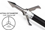 Sharp as darts and SOLID stainless from the tip of the newly designed cut-on-contact and bone-splitting "Trocrazor II" tip to the solid stainless blade-locking ferrule, NEW Fatal Steel combines multiple pieces into a single blockbusting package. The same classic look as our original heads with a one-piece mean streak! Features our original "No O-Ring" design and shock absorbing blade spring to assure superior penetration with no deflection from any angle. Shaft and tip are engineered to extend far enough to provide start-up penetration just before blades arrive for true trajectory after impact and maximum follow-through damage. Combine the fastest-opening mechanical available with the one-piece power, strength, and tool-steel sharpness of a 100% stainless steel body. FATAL STEEL! "WATCH 'EM DROP"!