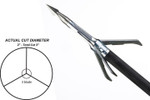 CARNI-FOUR 4-BLADE - 4-blade, 1 ½" x 1 ¼" mechanical with Staggered Blade Technology that will change the mechanical world forever! The instant the two longer 1 ½" cut blades make contact and compress the internal spring, the two shorter 1 ¼" cut blades release and open with the touch of a hair! Giving you the largest 4-blade entrance hole on the market and an incredible "square" wound channel from start to finish!