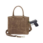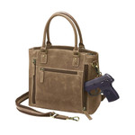 - Gun compartment zippers are tone on tone brown nylon coil for safety