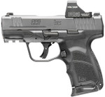 The CC9 is HKs smallest double-stack handgun. Its small features mirrored ambidextrous controls; picatinny-style rail; optics-ready featuring an RMSc/407k footprint; 5lb trigger has a crisp wall and reset; factory included night-sight and a grip with two interchangeable backstraps. Includes 10rd and 12rd magazine.