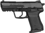 The HK45 Compact uses a slim-line grip profile, otherwise is nearly identical in features to the full-size HK45. The HK45 Compact uses an HK proprietary O-ring barrel for precise barrel-to-slide lockup and optimal accuracy. Capable of firing standard .45 ACP ball through +P ammunition, the HK45 Compact has an 8rd magazine capacity but can also use 10rd magazines, including those designed for the full-size HK45. The HK45C uses a control lever frame mounted and is quickly accessible, it has a positive stop and returns to the "fire" position after decocking; the control lever function of the HK45C can be switched from the left to the right side of the pistol to accommodate left-handed shooters (additional parts required), left and right mounted control levers provide safety and/or decocking functions as required and can be fitted to the pistol simply by changing parts. For true ambidextrous use, a control lever can also be mounted on both sides of the pistol if required. Includes an extra backstrap for a custom fit for each shooter's hand and two 8rd magazines.