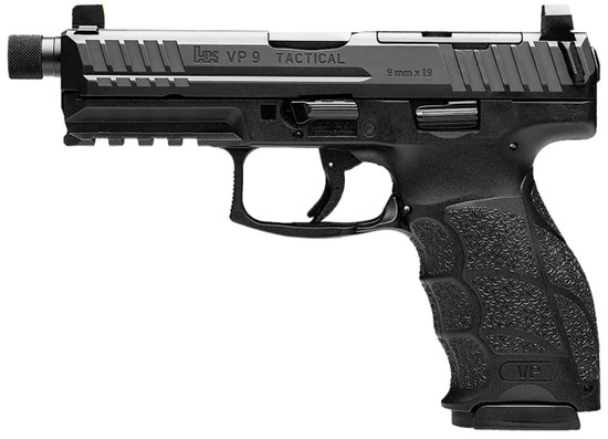 The VP9 Tactical OR features machined optics cut slide accommodates popular red dots; grip with interchangeable backstraps; sights provide a lower 1/3 Co-Witness through the window of a red dot sight while remaining visible over the top of most suppressors; Rear sight with serrations gives a cleaner, black sight. High-contrast color tritium front sight for fast day or night acquisition. Includes two magazines.