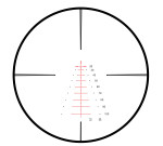 Aim points from 20 - 100 yards with 5 yard marks. 10 yard aim points incorporate windage bars and dots to compensate for 10 mph and 20 mph cross winds.
