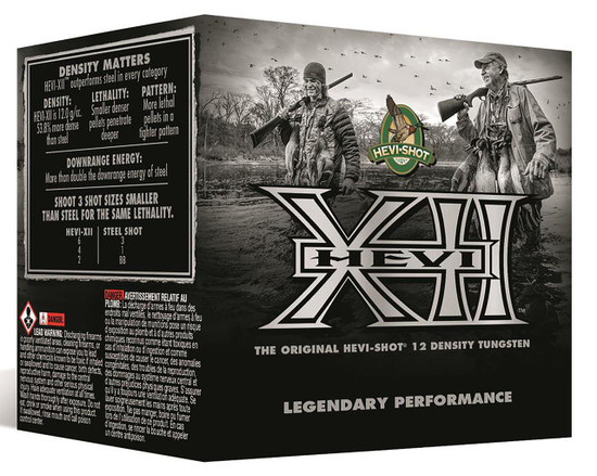 THE ORIGINAL HEVI-SHOT®, now in a 25-round box. Introducing Hevi-XII™. Shoot three shot sizes smaller than steel for the same lethality with 28% more tungsten pellets on target. The end result? More kills, fewer cripples, better stories. Pack Hevi-XII in and walk out carrying extra weight.