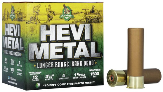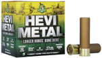 Pattern Density Technology™ Our HEVI-Metal Longer Range is all about more pellets on target at longer range. We aren't talking about "sky-busting," we are talking about your buddy crippling a bird and it sailing across the lake... you will have confidence in your HEVI-Metal Longer Range to knock that bird out of the sky. The 30% layer of bismuth is one shot size smaller than the 70% steel. This ensures both layers have equal downrange performance.