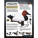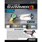 Higdon's Swimmer decoys create the most realistic motion and ripple in your spread possible. Add this motion to these over-sized, high-contrast, realistic battleship Mallard Drake decoys, and you've got a deadly combination. Simply attach a decoy-cord and weight and drop into the water for a quick set-up. Decoy is powered by the included internal 12V lithium ion battery and timer that is built within the decoy housing that swims the decoy intermittently. This swimming motion naturally creates added realism to your set-up. The XS Swimmer decoy design has the battery and timer within the decoys housing which eliminates a traditional battery box attachment. Lithium Ion batteries are more durable, smaller and lighter in weight and are longer lasting versus the traditional lead acid batteries. No external battery box means less bulk and less weight. A single XS Swimmer decoy can fit into most slotted decoy bags for easy transport. Recommended water depth is water as shallow as 1 foot of water. Runtime: 7hrs. Fast recharge time of 6 hours. Package contents: decoy with attached 750GPH bilge pump, battery and timer pre-installed within the internal battery box, charger and operating instructions. A percentage of your purchase will go to Ducks Unlimited to help with their efforts for wetland conservation.