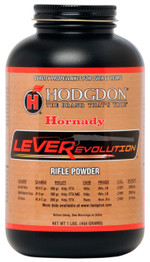 Hodgdon Powder Company and Hornady Manufacturing have teamed together to answer the frequently asked reloading question; "Can I buy the powder used in Hornady LEVERevolution factory ammunition?" Yes, this is the same spherical propellant used in Hornady's innovative and award winning high performance factory ammunition. This fabulous propellant meters flawlessly and makes lever action cartridges like the 30-30 Winchester yield velocities in excess of 100 fps over most published handloads, with even greater gains over factory ammunition. Other cartridges include the 35 Remington, 308 Marlin Express, 338 Marlin Express and the 25-35 Winchester. The list of cartridges and bullets is limited with this highly specialized powder.