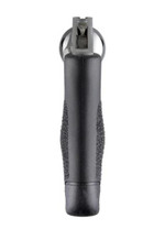 One-piece rubber grips for revolvers. Grips slide on the frame from the bottom, a special steel stirrup device clips over stockpin or bottom strap, grip screws to stirrup. Orthopedic handshape, ambidextrous palm swells and a generous recoil shoulder. Relieved for speed loaders. Cobblestone texture.