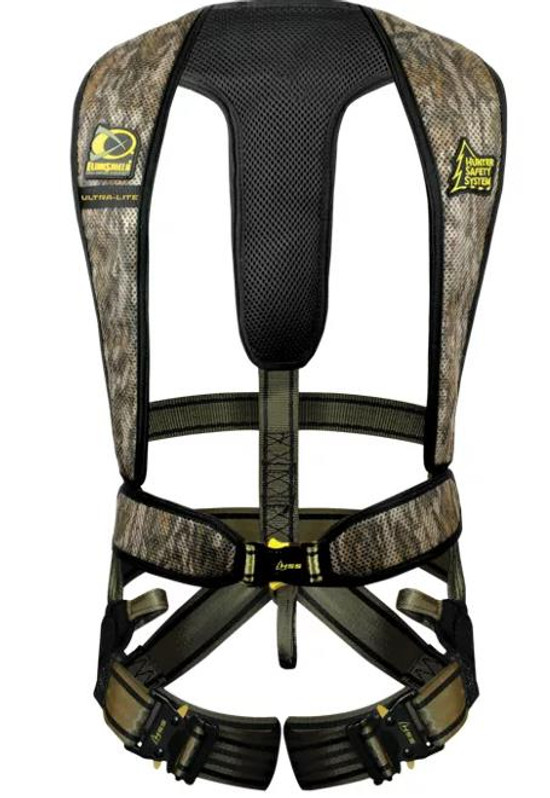 The lightest, most flexible harness available from Hunter Safety System®, the Ultra-Lite Safety Harness provides a comfortable, snug fit and safety without hindering mobility. Combining a mesh shoulder harness and belt with thin 1.25" upper-body webbing and tether, the Ultra-Lite provides the strength you want in a trim design without added weight and bulk. A trustworthy design, this harness provides fall protection you can count on without dangerous dangling straps and weave-through buckles. Integrated into the harness' fabric, ElimiShield® scent control technology resists odor. Includes a secure, mesh cell phone pocket. Weight: 2 lbs. Maximum weight capacity: 300 lbs. Imported.