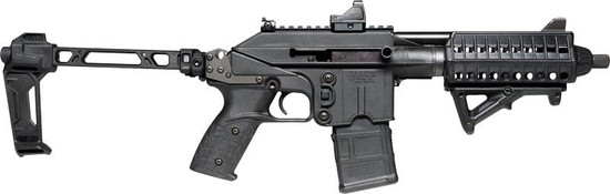 Chambered in 5.56 NATO, the PLR16 is an excellent option for small game hunting, hiking, turning heads at range day or any situation that requires a rifle caliber in a pistol platform. It accepts standard AR-15 magazines and its ready for customization to fit your needs. Features a KelTec PLR16 stock/brace adapter/Strike Industries pistol stabilizer brace; Magpul angled grip; threaded barrel and compact forend. Includes Viridian RFX-11 green dot.