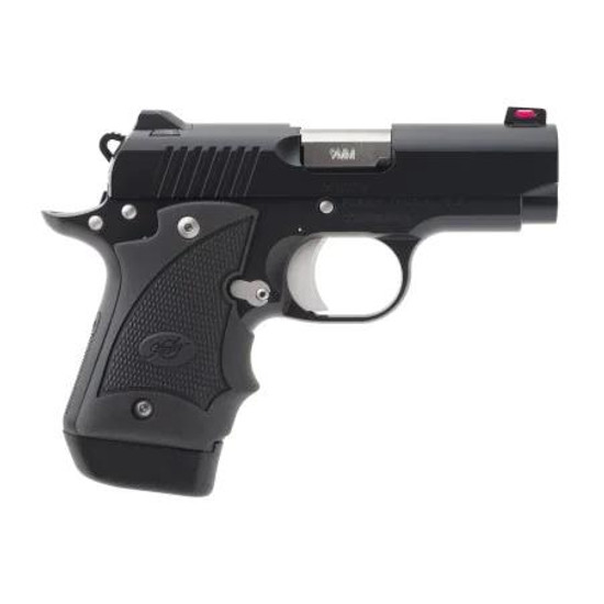 9mm caliber pistol with a 3.15"" barrel. Has a black finish, aluminum small parts, a fiber optic front sight, Hogue wraparound grips, and one 7 round magazine.