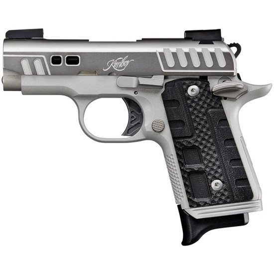 This brand new Kimber Micro 9 Rapide (3300223) Black Ice is a semi-automatic pistol which fires the 9mm round. It has a 3.15"" barrel with silver/gray slide and Kimpro II silver frame. This includes 1 6-round magazine, black G-10 grips, fiber optic night sights, box, zipper case, lock and manual.
