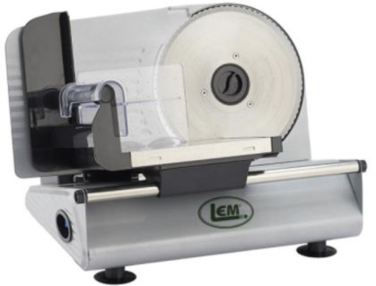 Our line of slicers provide a range of durability and precision slicing systems to suit every need. The LEM 7 1/2 inch slicer is constructed with heavy-duty painted steel and comes with a stainless steel serrated blade to handle your slicing needs. The 150 watt, belt-driven motor allows the home user to impress family and friends with deli thin lunch meat; consistent, uniformly thin jerky strips and a variety of vegetable and cheese platters. Cuts wafer thin to 20mm (.8in).