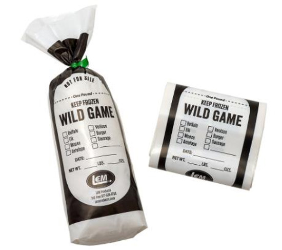 Pack your wild game meat the easy way. Quality opaque, polyethylene bags have a 1 1/2" bottom gusset for added burst protection. The heavy 2 mil thickness guards against freezer burn. When filled and frozen, they stack neatly in the freezer. Seal bags with our Poly Bag Taping Machine and Poly Bag Tape - or seal with Hog Rings and Pliers. "NOT FOR SALE" printed on all bags.