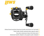 Lew's® Super Duty® 300 Baitcast Reel is the ultimate reel for big bait, heavy line, big fish situations. Cast confidently with its double-anodized large capacity spool, Multi-Setting Brake system (MSB), and high strength solid brass Speed Gears®. Generate pure cranking power with a 100mm bowed anodized aluminum handle with Winn® Dri-Tac knobs. Fish efficiently with the patented retractable Speed Keeper® hook keeper, effectively holding all hooks in place to prevent tangling.