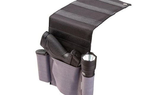 The Lockdown® Night Guardian Low Profile Holster is made specifically for the person that wants a lower profile bedside holster but wants to maintain the same accessibility as the original Night Guardian Holsters. The Night Guardian Low Profile Holster is made of nylon with reinforced backing for rigidity. The tuckable section can be folded at different depths for holder height adjustment. The 4.25 inch wide elastic holster holds handguns from compact semi-autos to full frame revolvers. This holster was designed for ambidextrous use and has 2 accessory/magazine elastic holsters along the side.