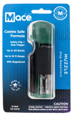 ALWAYS READY: Mace® Brand Muzzle Dog Repellent Pepper Spray is ready if and when you need it. Simply put your thumb under the flip-top safety cap and press down on the red actuator button to spray.