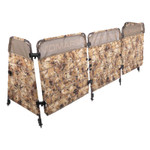 Engineered from the ground up by the waterfowl blind experts at MOMARSH, the Versa-Blind is the most versatile, most user-friendly portable group blind system on the market. Designed to be used on dry ground or in up to 24 inches of water, this blind goes wherever the ducks want to be. The Versa-Blind's individually adjustable legs and camo panels extend up to 22", allowing it to be set up at variable heights, at variable angles, and on uneven terrain. The Versa-Blind's exclusive Cam-Lock Hinges allow the panels to be configured to any angle, and then locked together securely, with no support bracing needed on the inside of the blind. This makes the blind safer, allows more space for hunters and dogs, and eliminates barriers and tripping hazards. Each front panel comes with a pocket to keep you organized, shell straps to keep ammo handy, and a tough Dura-Mesh top for visibility and concealment. GORE™ OPTIFADE™ Concealment Waterfowl Marsh Camo pattern and multiple stubble straps on front make this blind easy to brush in and hide. Each blind comes with an adjustable A-Frame Connection Bar, allowing hunters to connect a second Versa-Blind to create an A-Frame style double-sided hide. The Versa-Blind features steel tube construction with aluminum adjustable leg extensions, making it super-rugged but lightweight. Carry handles make it easy to transport when folded up. Front panels are 42" H x 36" W. Blind height adjusts from 45" to 67" vertically. Blind panels width up to 114" Total Weight: 39.5 Lbs.