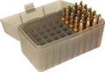 In the late 1960's, the original RS-S-50 was designed specifically for benchrest shooters. The CASE-GARD 50, which is available in eight sizes will hold .22 Hornet to 375 Remington Ultra Mag., with each cartridge resting in its own individual compartment. Each CASE-GARD 50 ammo box is supplied with a load label for recording load and sight data. All rounds listed as bullet up, unless noted. See ammo box charts for more calibers.