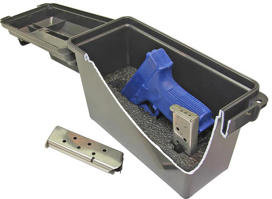 Small and discreet grab and go tactical pistol handgun case. Designed to transport a compact handgun with room for two magazines. Precut military spec foam holds pistol securely.