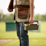 100 round shotshell carrier for the shotgun Sports. It has been designed to take only shotshells and cell phone to shooting line or field. It comes with FOUR MTM Shell Stackers 12ga. 2 3/4" clear shell boxes and easily holds 4 12 Ga. 2 3/4" cardboard shell boxes. Strong comfortable fold over handle, has two 12ga. only grippers, for extra shells for do over shots. Slot alongside caddy is for storing box lids or smart phone. Also, can be used with 20ga., 28ga. down to 410ga..