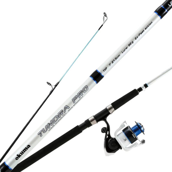 The Okuma Tundra Pro Spinning Combo features a durable, yet sensitive, graphite composite rod blank combined with a high-end reel. The blank is complete with Ultimate Flex Reinforcement rod tip technology and tip-over-butt ferrule connection for an improved feel. The reel is built with a multi-disc oil felt drag washer and features a three ball bearing drive system