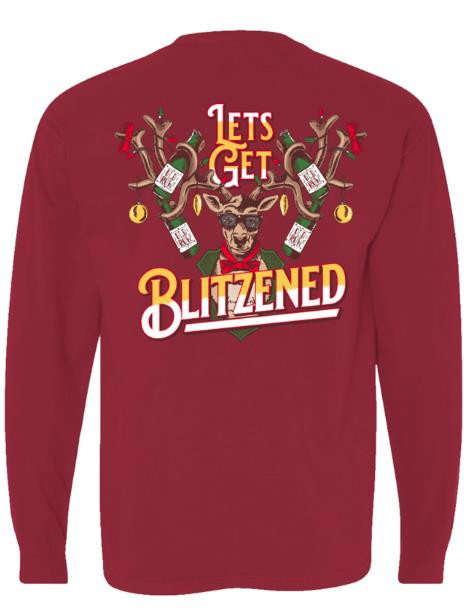 Old Row Lets Get Blitzened Tee - Long Sleeve - Crimson