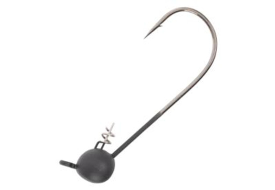 The Shaky Head features Owner's TwistLOCK "Centering-Pin-Spring" (CPS - Patent Pending) molded into the lead. Small diameter finesse baits can be "permanently" secured by inserting the pin in the center of the nose of the soft plastic, which can then be twisted (Screwed) onto the TwistLOCK coil spring to rig perfectly everytime! Ideal for weedless-style Texas Rig'n, and on the bottom, contoured jig head "rocks" forward to present baits in a tantilizing nose-down position. Round bend, light wire hook has a 45° cross eye, Super Needle Point and a black chrome finish.