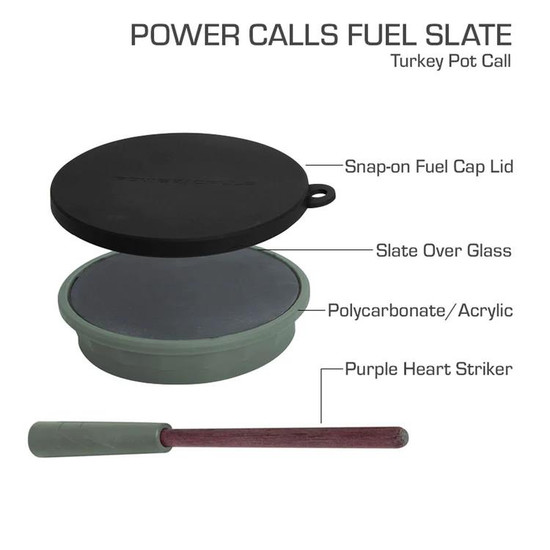 The Power Calls Fuel Friction Call is an easy to use friction type call. The Crystal model enables higher frequency cuts and yelps that sometimes triggers a response from hung up gobblers. The Slate model makes the sweetest tree yelps and cluck/purrs for when up close quiet calling is needed.