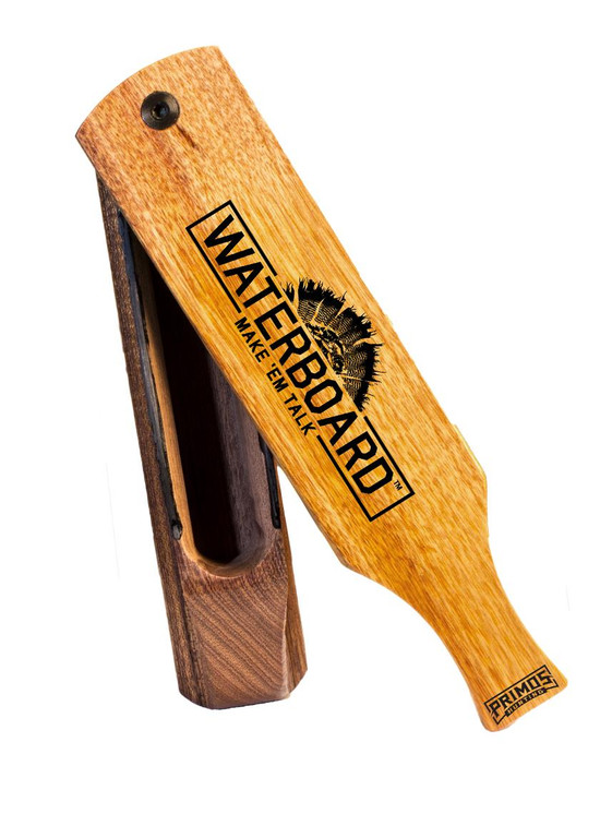 If you need to make a gobbler talk, rain or shine, the Primos Waterboard™ is your call. With each side producing different tones, you can replicate the sounds of multiple hens cuts, clucks, purrs, or yelps. The mahogany box and canary paddle is a great combination for great calls. Works wet or dry. Make 'em talk with the Waterboard!