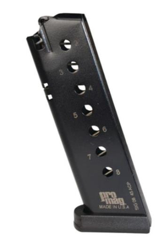 This replacement or spare magazine is compatible with your Sig Sauer P220. It is constructed of heat treated steel with injection molded mag follower and mag spring formed from chrome silicone wire. Made in the USA.