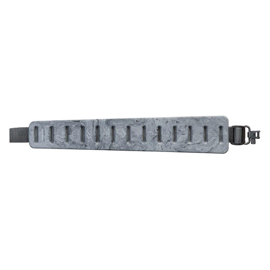The CLAW® Sling System is widely known for having the best non-slip pad incorporated into a sling. The extremely durable and odor resistant pad is molded into the sling webbing to allow approximately 1/2" of stretch. This stretch spreads the weight of the firearm across the shoulder area greatly increasing your comfort. The unique gripping action of the non-slip pad keeps the firearm in place on your shoulder, eliminating the tugging, rolling and pulling caused by other slings on the market. Hunting in extreme conditions this season? The CLAW® Sling will last as long as you do in anything from miserably hot to arctic cold weather conditions. The pad will remain flexible to -40 degrees fahrenheit and is U.V. stabilized to eliminate fading or cracking. The durable CLAW® Rifle Sling can be used with rifles, shotguns or any firearm with swivel studs mounted on the buttstock and barrel. As an added value, the CLAW® Rifle Sling includes HUSH STALKER II™ QD Metal Sling Swivels. Comfortable to use and easy to clean, the CLAW® Rifle Sling will not hold water like foam, urethane or leather slings.