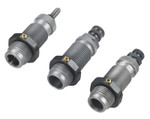 RCBS pioneered and developed 3-Die Sets for straight-wall rifle and pistol cases. The Carbide Sizer Die sizes the case and de-primes (the carbide sizer ring eliminates the need to lubricate). The Expander Die expands the case to the proper diameter to accept the bullet, and it imparts case mouth flare/bell for bullet feeding. The Seater Die seats the bullet and taper crimps.