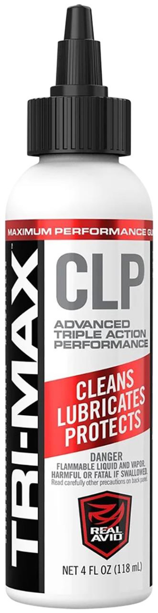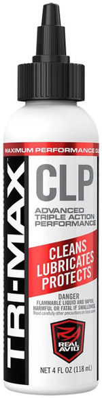 Real Avid Tri-Max CLP is an all-in-one gun cleaning and maintenance solution that allows you to clean, lubricate and protect against rust in one step. CLP saves you time and ensures effective gun maintenance that is the preferred solution used by todays military. Tri-Max CLP advanced formula performs as an effective bore cleaner and solvent on all gun parts. It will tackle grime and burnt powder residue and will help minimize gunk build-up. Tri-Max CLP ensures long-lasting lubrication of moving parts to reduce friction and to protect from wear. It excels in extreme environments and will work reliably in heat, dust, or arctic cold. Tri-Max CLP is chemically engineered to act as a powerful inhibitor. It creates a moisture barrier to protect against the environment and prevent rust.