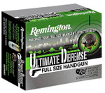 Ultimate Defense Full-Sized Handgun ammo uses a Golden Saber BJHP bullet which expands and penetrates for massive knockdown power. From bullets specially designed for controlled expansion and optimal energy transfer to waterproofing and powders treated to reduce muzzle flash, its reliable stopping power stands ready for when you need it most.