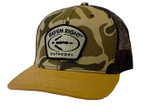Plastic snap closure. Structured. Slight pre-curved bill. Higher Profile.