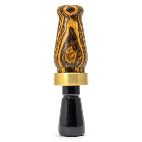 No contest ring. No gimmicks. No compromising.It's just pure, raw, balls-to-the-wall, don't tell your mother, most powerful, non-nuclear duck calling machine on the planet. Modeled after the super nasty Short Barrel, we have added a much more aggressive calling style to its design. It's a Short Barrel on steroids. We have given the call a higher reed set along with a wider bore to give it a more demanding presence than the Short Barrel, while still maintaining the ability to get down and dirty on the low end. Louder, raunchier, and more powerful than its little brother. This call may not be for everyone. But if you can drive it, Game over. Single Reed. Bocote wood/Polycarbonate.