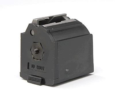 BX-1 10-round, .22 LR caliber magazine is made of black plastic with steel feed and works with any factory original 10/22® Rifle, SR-22® Rifle, 22 Charger™ Pistol, .22 LR Ruger American Rimfire® Rifle and .22 LR Ruger 77/22® Rifle.