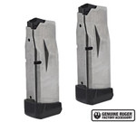 This E-Nickel Teflon® coated, hardened steel Genuine Ruger® Factory Magazine is compatible with the MAX-9® pistol. This magazine comes with an extended floorplate installed. It is not compatible with other Ruger 9mm pistols. This Genuine Ruger® Factory Accessory is made in the USA.