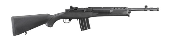 Garand Style action with breechbolt locking system, fixed-piston gas system and self-cleaning moving gas cylinder. Compact hammer-forged barrel with flash suppressor. Ghost ring adjustable rear aperture sight and protected, non-glare post front sight. Integral scope mount machined directly on the solid steel receiver. Receiver is drilled and tapped for mounting included picatinny rail and comes with scope rings. Black synthetic stock.