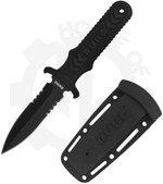 A Full Tang boot knife it has a 4mm thick black titanium nitride coated spearpoint blade with non-slip rubber edged and glass reinforced nylon sheath and a reversible boot clip.