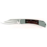 Lockback folding knife, hardwood handle, 420A stainless steel. Blade Length: 3-1/2" Closed length: 4-3/8".