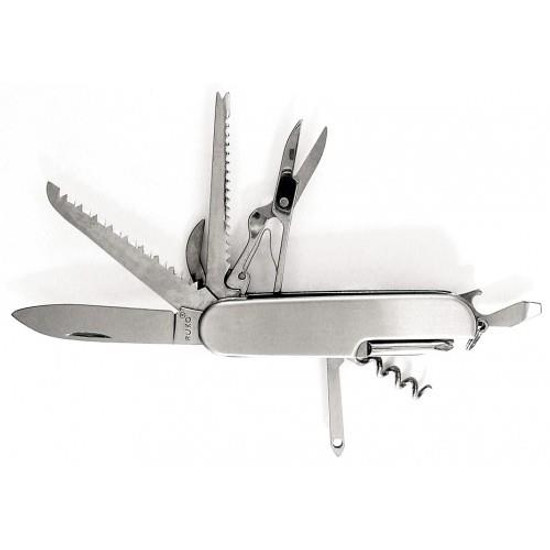 Brushed stainless steel 11-function swiss-style knife, 420A Stainless Steel Blades and Frame, Closed Length: 3-1/2"