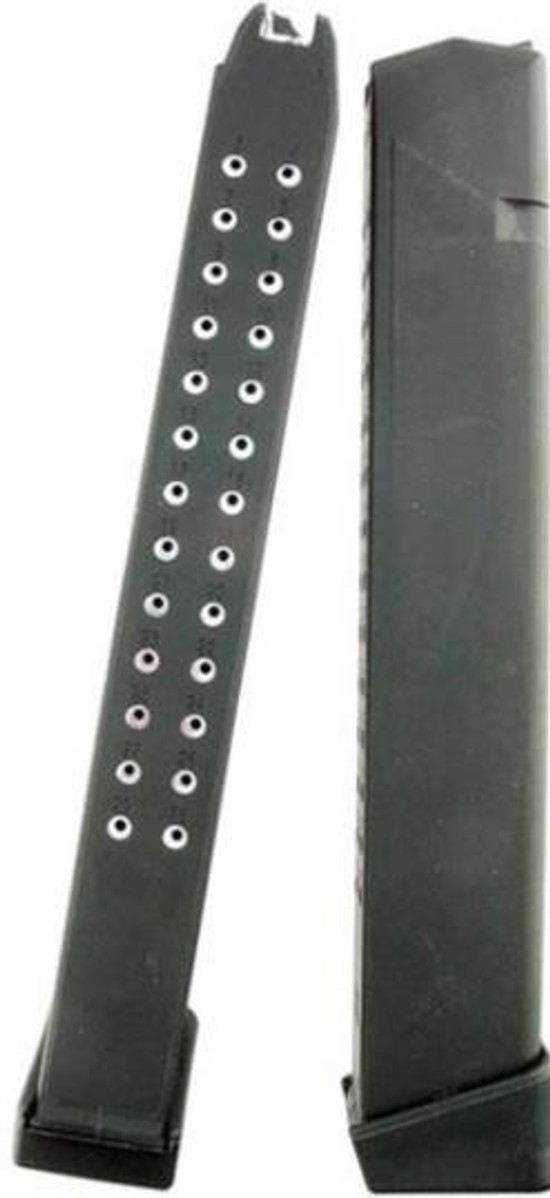 This is an extended Glock magazine for any 40sw (models G22, G23, G27). It holds 31 rounds, made in Korea and imported by RWB. These magazines are the same design as original Glock magazines with a steel lining to insure reliability and prevent bulging from long term storage.