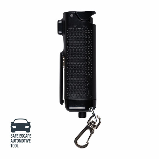 Make your commute safer with the SABRE Safe Escape 3-In-1 Pepper Gel. This pepper gel provides the tools to help you get out of your vehicle in the event of an emergency and protect yourself against an attack. Seat belts can be an obstacle to get out of after an accident. The built-in belt cutter helps to cut seat belts and free yourself in an emergency. The window breaker tool helps to break windows if your vehicle doors are jammed or the electric windows fail to operate. Protect yourself against an attacker; This unit deploys 25 powerful bursts (5x the competition) of pepper gel and has a 12-foot (4-meter) range for protection at a safe distance. It includes UV marking dye to help the authorities identify an attacker after they're sprayed. The flip top design allows for the immediate deployment of your pepper gel in high-stress situations when seconds count. With an industry-exclusive HPLC laboratory, only SABRE guarantees its maximum strength formulation in every canister to help give you peace of mind, certainty, reliability, and safety when you need it most. SABRE pepper gel is made in the USA.