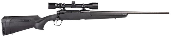 Savage Arms Axis bolt-action centerfire rifle blends unflinching performance and impressive accuracy. It sports a modern design that features sleek contours, recoil pad vents, and a textured, easy-to-control grip. The Axis also features a carbon-steel barrel, a black synthetic stock, a drilled and tapped receiver, and offers silky-smooth bolt operation.