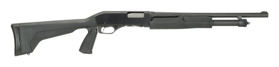 Take on any tactical situation with a shotgun built specifically for the task. This 320 Security model combines an 18.5-inch barrel, bead sight, and a black matte synthetic stock with a pistol grip. Like all 320 shotguns, it features a smooth, reliable pump action, proven rotary bolt and dual slide-bars.
