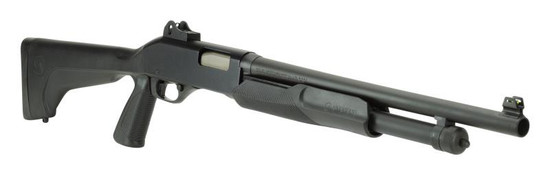 Take on any tactical situation with a shotgun built specifically for the task. This 320 Security model combines an 18.5-inch barrel, ghost ring sights, and a black matte synthetic stock with a pistol grip. Like all 320 shotguns, it features a smooth, reliable pump action, proven rotary bolt and dual slide-bars.