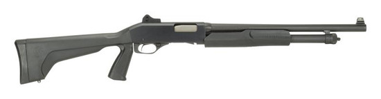Take on any tactical situation with a shotgun built specifically for the task. This 320 Security model combines an 18.5-inch barrel, ghost ring sights, and a black matte synthetic stock with a pistol grip. Like all 320 shotguns, it features a smooth, reliable pump action, proven rotary bolt and dual slide-bars.