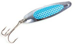 Nickel plated and polished casting spoons. Hooks are plated for saltwater use. 1/4 oz and 1/2 oz models have a red lure flipper on the hook ring. - Gold plated and polished casting spoons. Hooks are plated for saltwater use. All gold spoons have a red lure flipper on the hook ring.